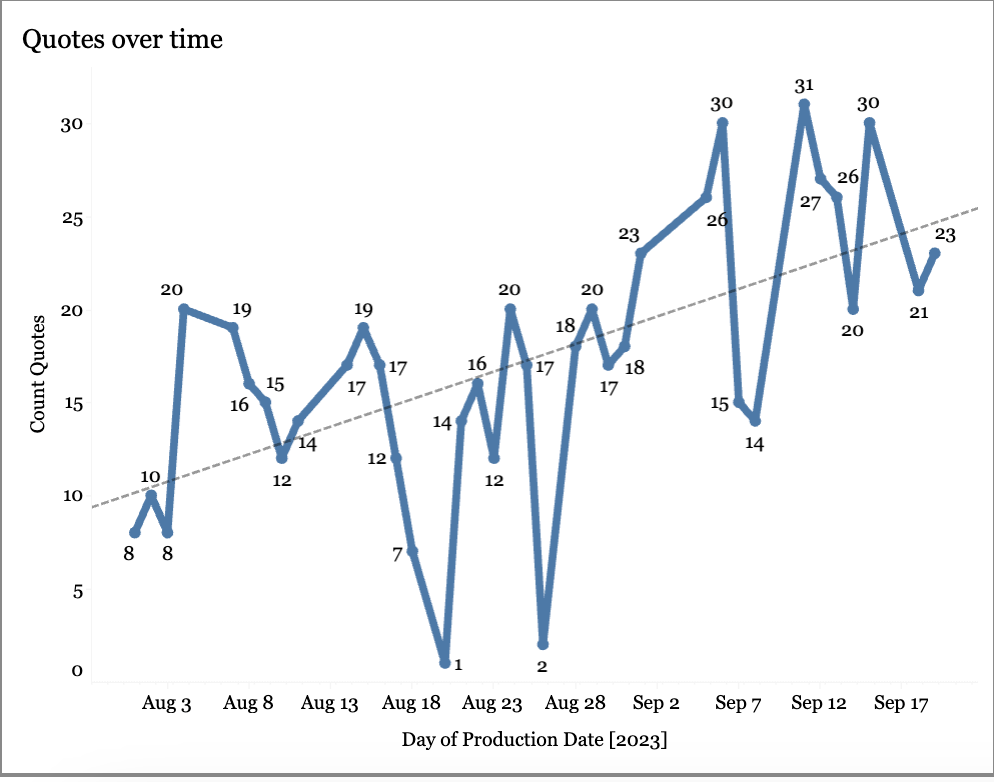 Item close has dropped from 21% in August to 16% in September. Here is what that drop does to quotes:
